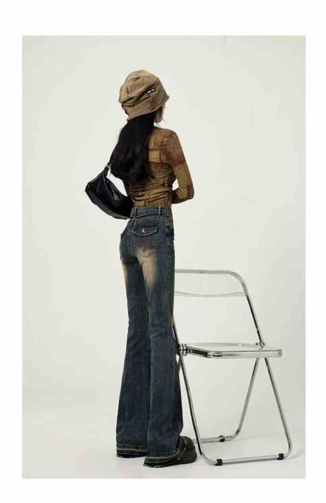 ins辣妹复古微喇叭牛仔裤女春秋爆款美式马蹄拖地裤,高弹力单款单色,独立...