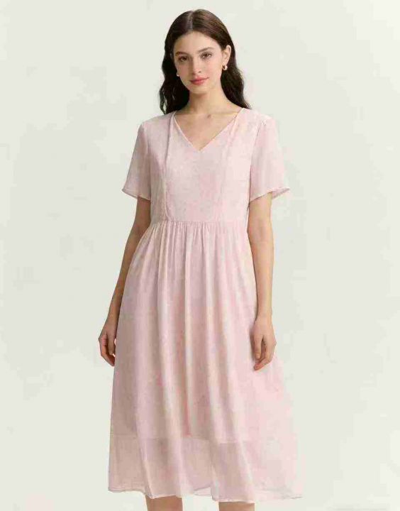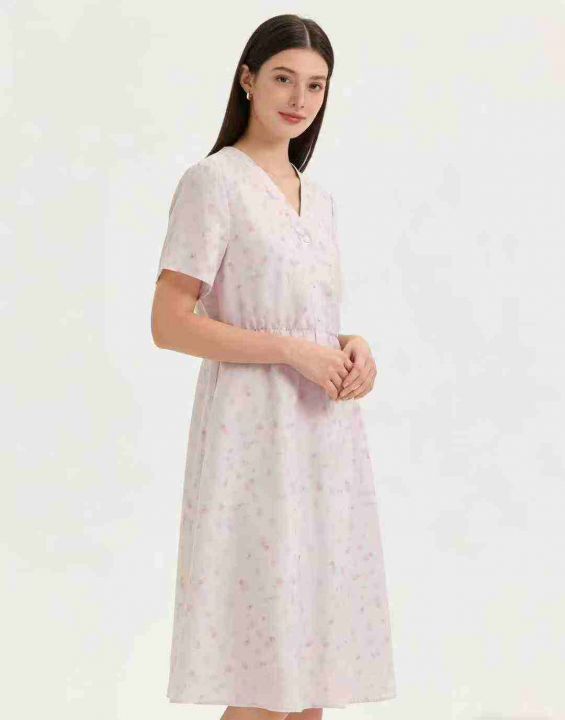 夏季茶歇法式轻熟温柔风v领粉色碎花裙超仙甜美气质收腰连衣裙女,图片款,品质可入实体店,有独立包装带吊牌,码数S-XL,数量170件左右,全清9.8元秒。