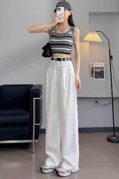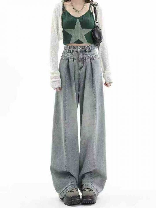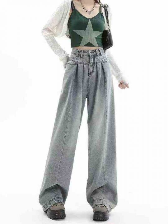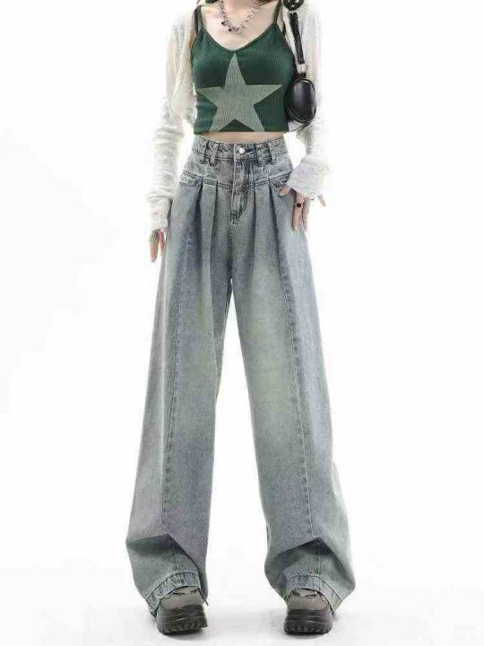 春秋新款高品质女装网红大阔腿牛仔长裤,独立包装带吊...