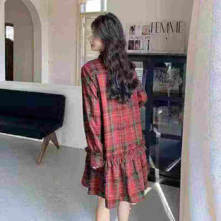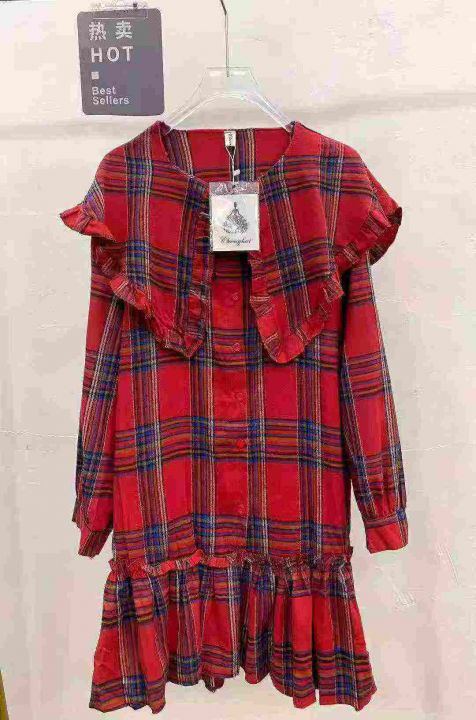 复古格子连衣裙121件9.9,翻领荷叶边,褶皱拼接,码标...