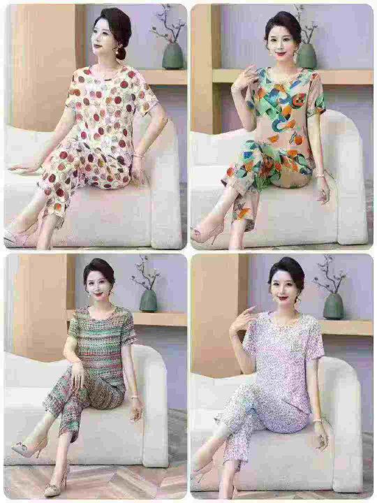 7.8清电商仓回收1650套夏季爆款中老年妈妈装套装,码...