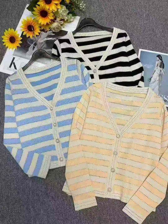 秋季条纹v领宽松小香风设计感遮肚显瘦长袖针织开衫,独立包装,均码面料柔软舒适透气宽松款,220件,全清8.9元超低价秒杀!分货加一!。 货号:1323