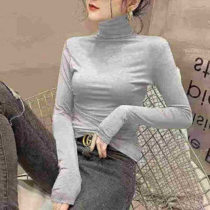 ☕️高弹力面膜打底衫女长袖t恤半高领春秋冬新内搭洋...