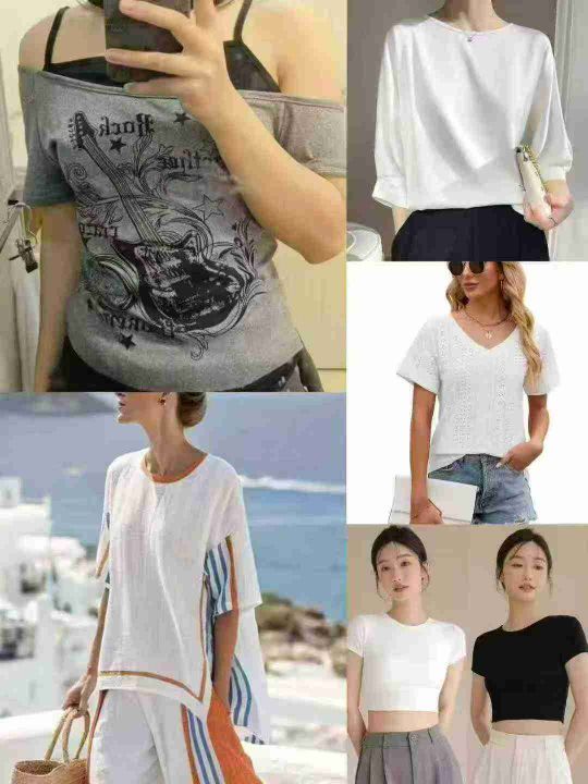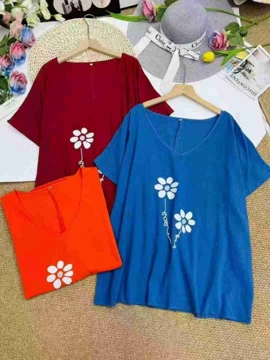 3.9清电商仓回收530件高级小众独特设计感花朵下摆大码纯色短袖T恤,码数XL-...