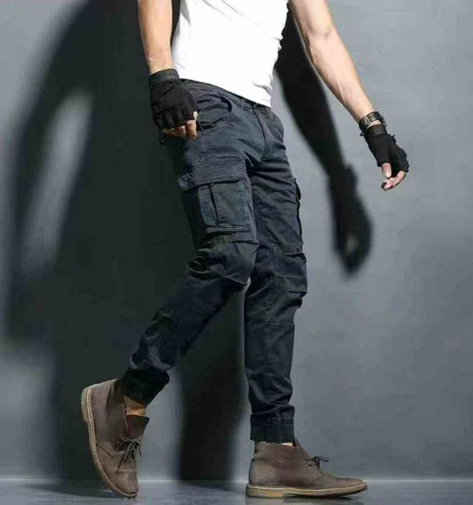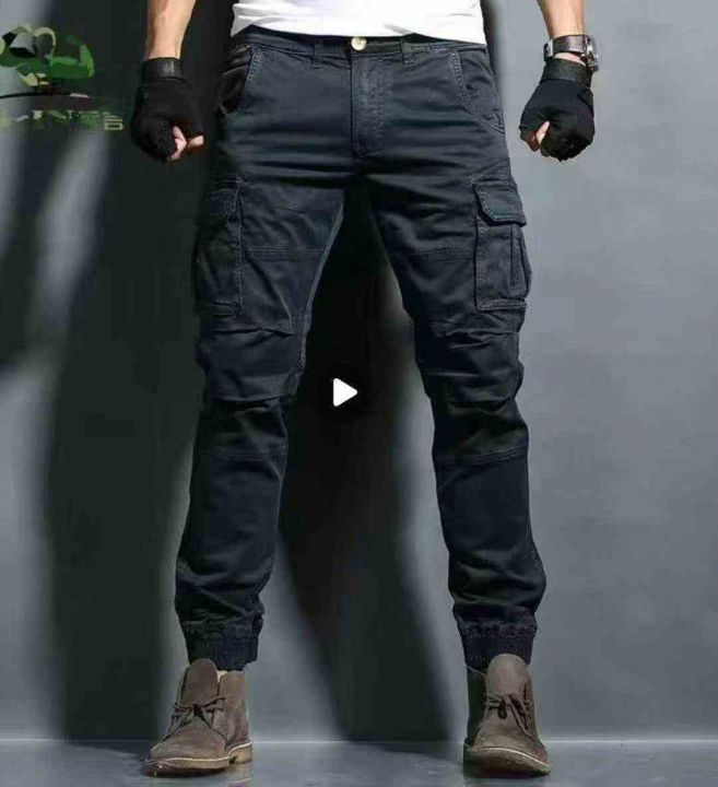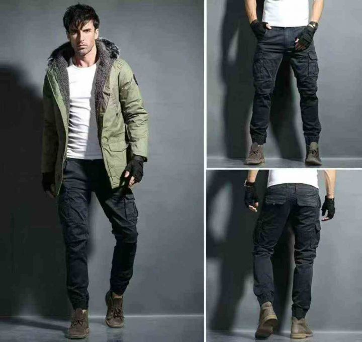 秋冬新款弹力洗水棉迷彩暗纹多袋牛仔工装休闲裤,独立...