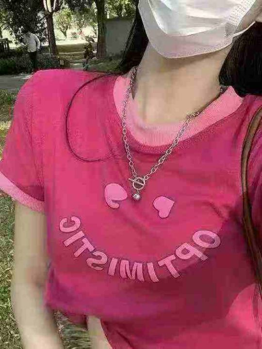 全清价6.9元字母印花拼色正肩短袖t恤女夏季甜辣妹性感修身短款上衣,独立包...