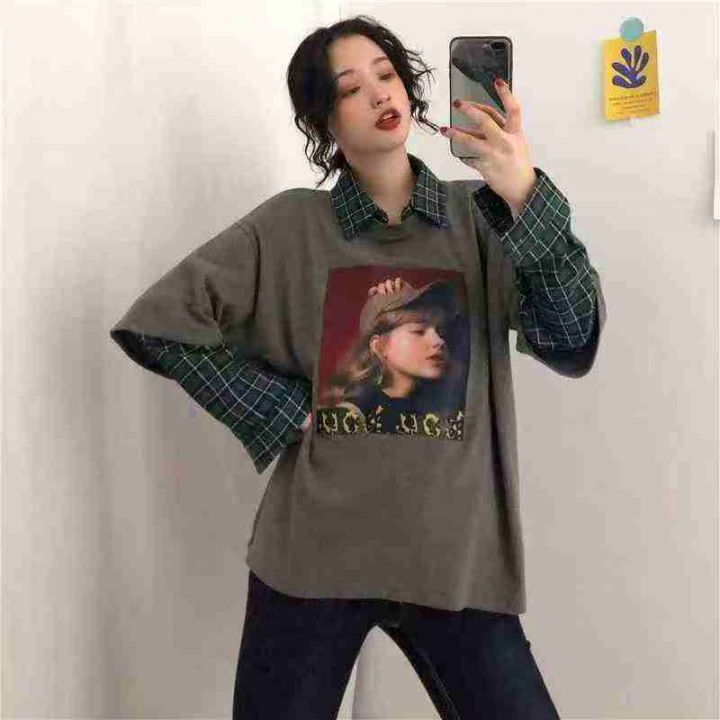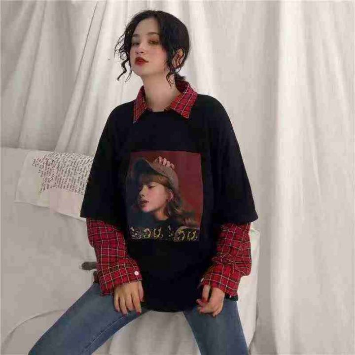 衬衫假两件卫衣☕️200件全清9.9元,单款3色,独立包装,不加绒春装新款韩版宽松格子拼接袖上衣学生卫衣