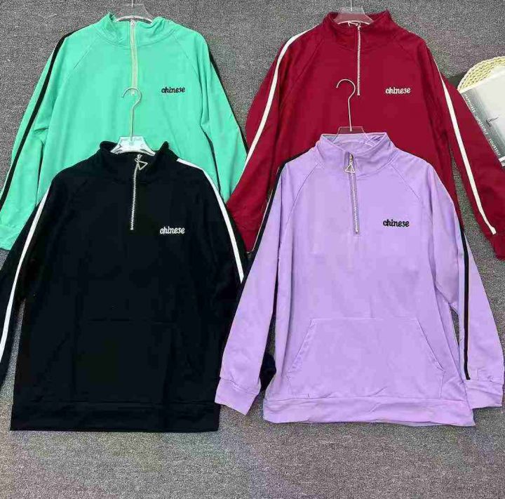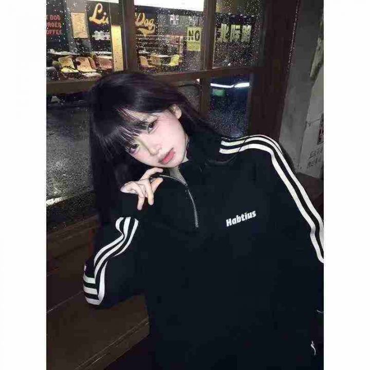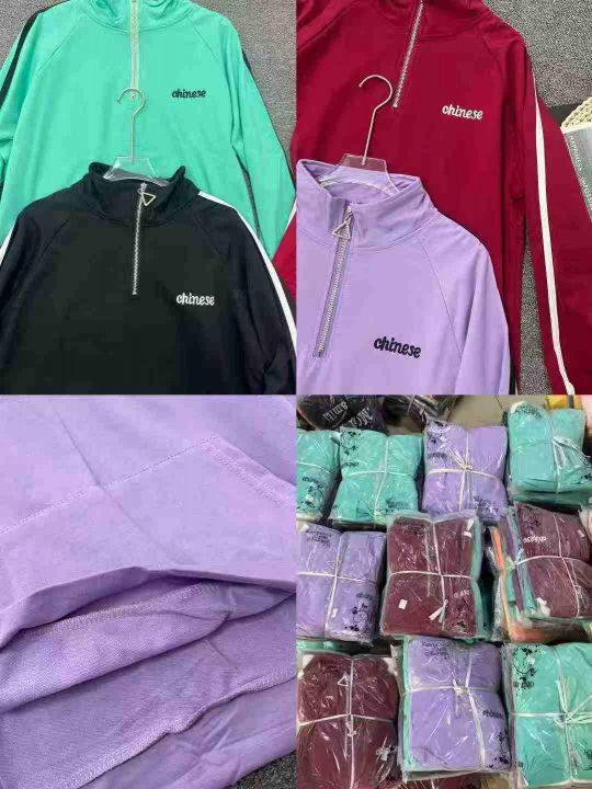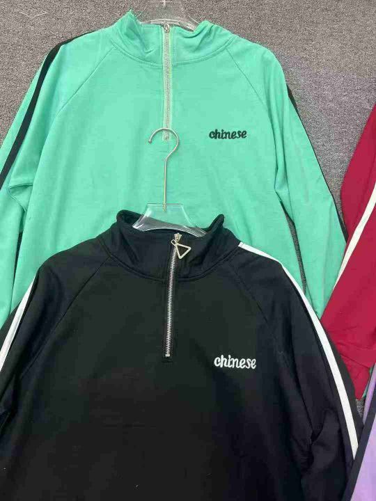 潮牌不加绒卫衣☕️210件全清9.9元,单款4个色,独立包装,半拉链翻领卫衣女春秋薄款宽松韩系运动风三条杠高街潮牌卫衣