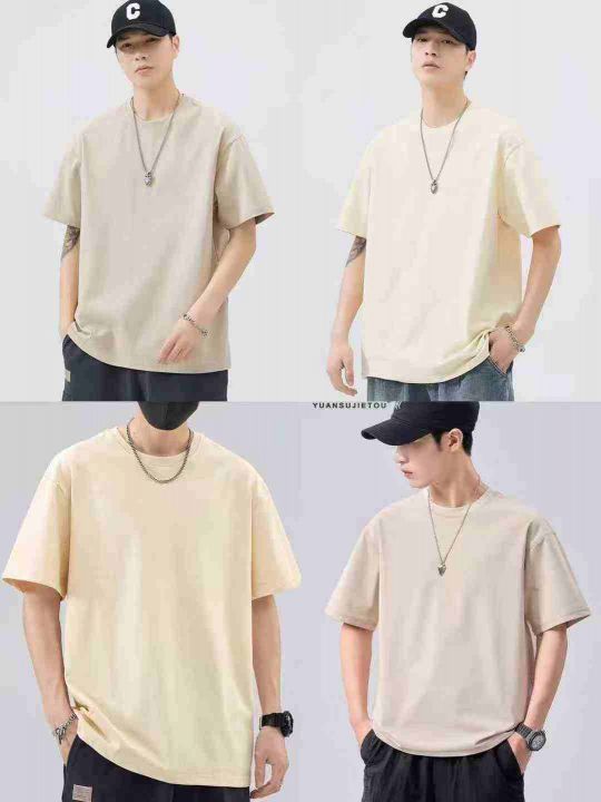韩系超显白奶杏色短袖T☕️230g双纱重磅美式纯棉短袖男女夏季圆领t恤纯色宽松打底衫8000件全清11.8 分货12.8 均码宽松版,10件一包装 天猫店品质做工