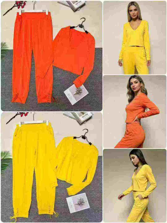 欧美时尚V领长袖+长裤两件套,整款多色,数量:550套,码数:S-2XL,品质好,有独立包装