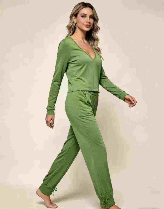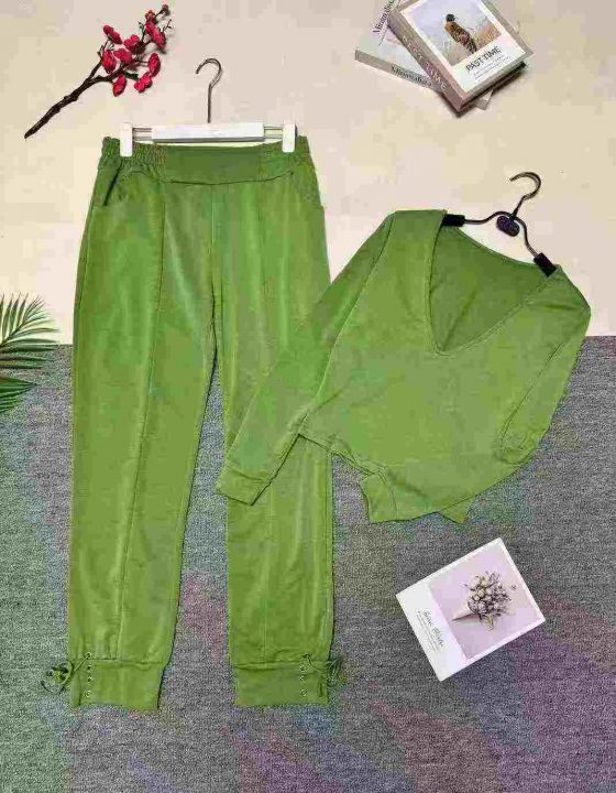 欧美时尚V领长袖+长裤两件套,整款多色,数量:550套,码数:S-2XL,品质好,有独立包装