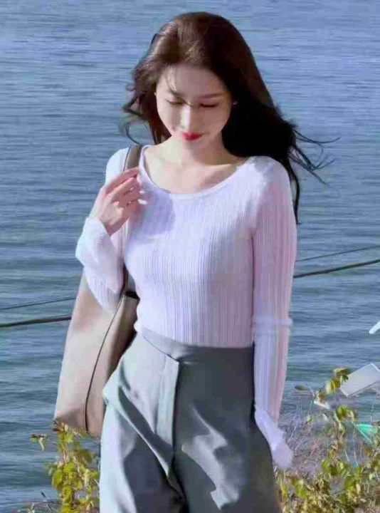 工厂回收582件韩系靓妹白色打底衫不规则设计感长袖T恤,码数S-2XL。面料有弹力,全部独立包装。分货+0.5