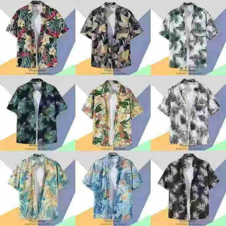欧洲站夏季新款男士衬衫夏日风情时尚短袖免熨烫翻领衬衣,独立拉链包装,码...