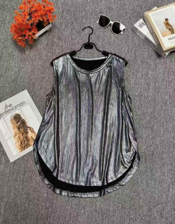欧美女装裙褶皱纯色吊带/亮面女士T恤 上衣,数量 215 ...