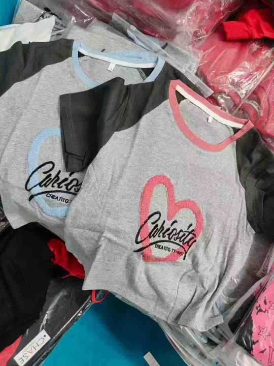 [發]撞色爱心短款插肩辣妹体恤260件左右独立包装 码...