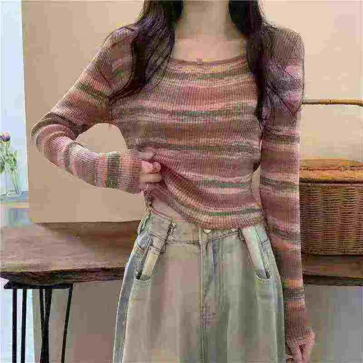 320件法式春秋季修身显瘦条纹长袖针织衫上衣,独立包...