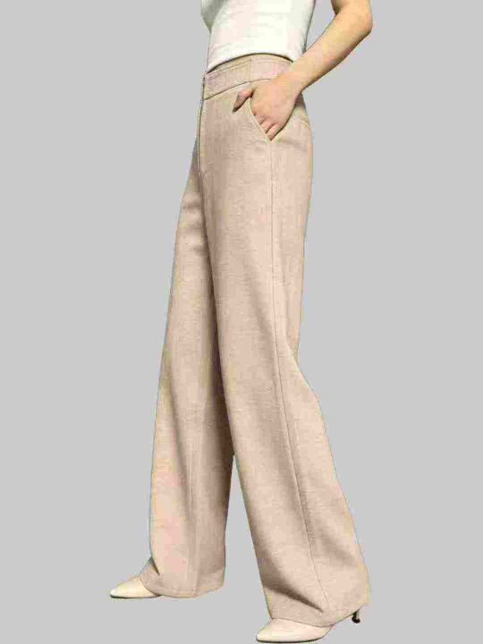 天猫精选500条 新款软糯垂感显瘦高腰直筒毛呢休闲拉链...