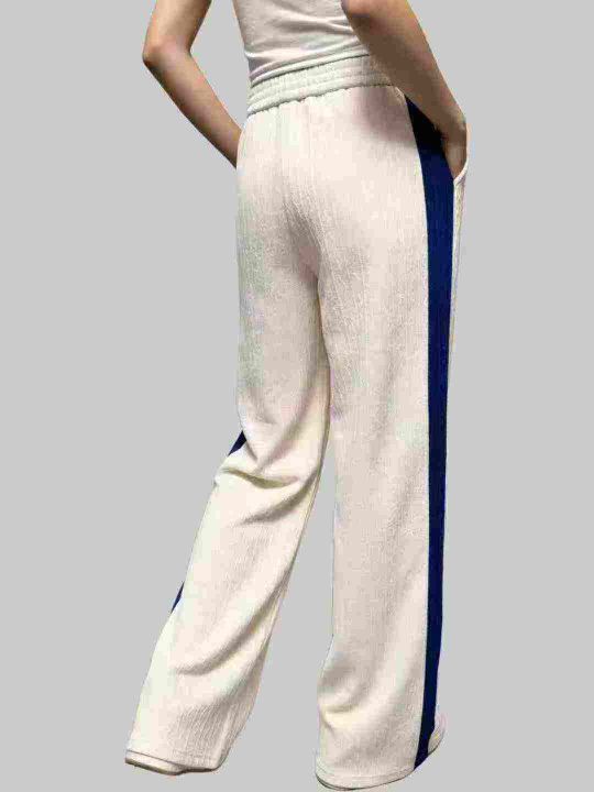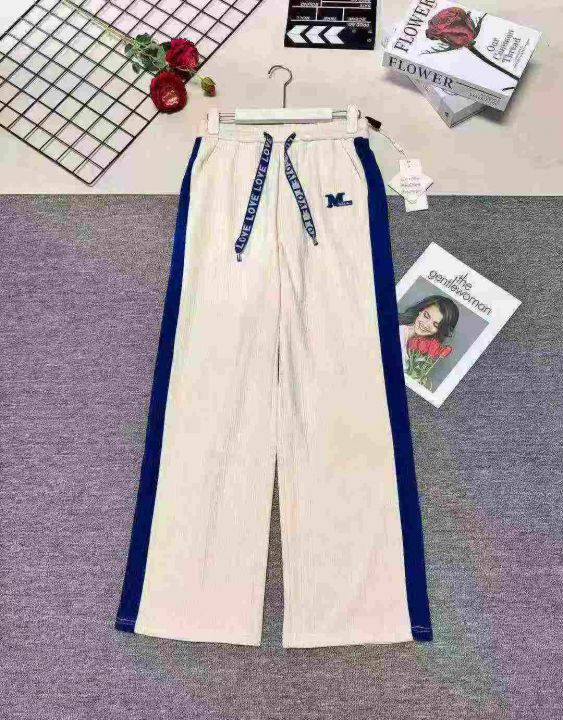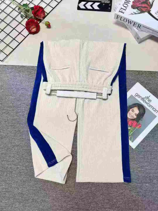 天猫精选230条,新款杏色拼蓝色条纹雪尼尔阔腿裤 吊牌...