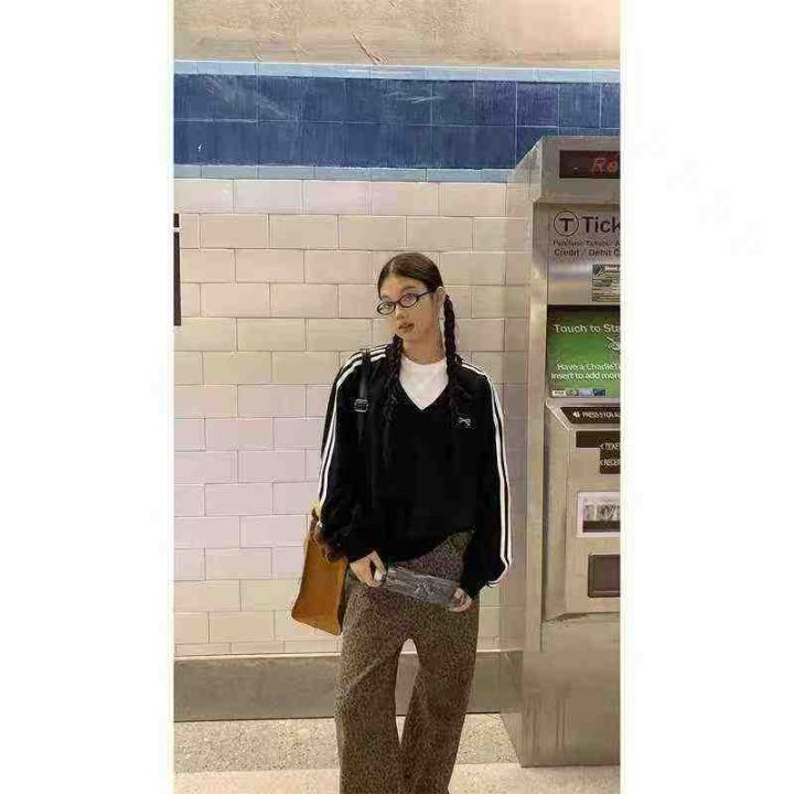 秋季新款POLO领撞色彩虹条纹微胖MM设计感时尚宽松长袖套头毛衣羊毛衫,独立...