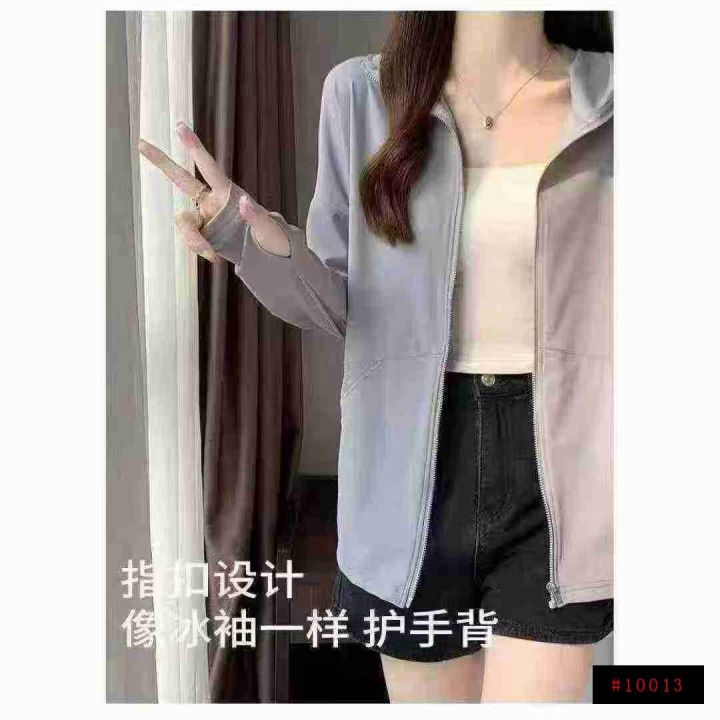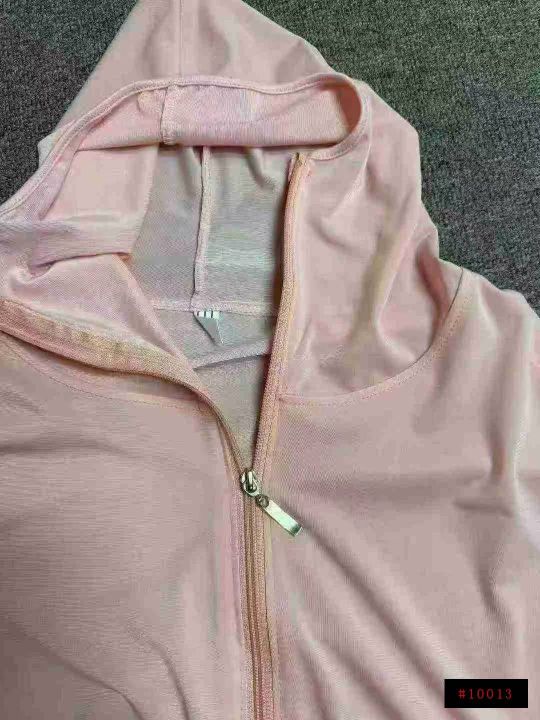 女士春夏冰丝氨纶连帽防晒衣,轻薄防紫外线拉链开衫款透气防晒衣,独立包装,弹力超大,数量140件,码数S-XL@_@