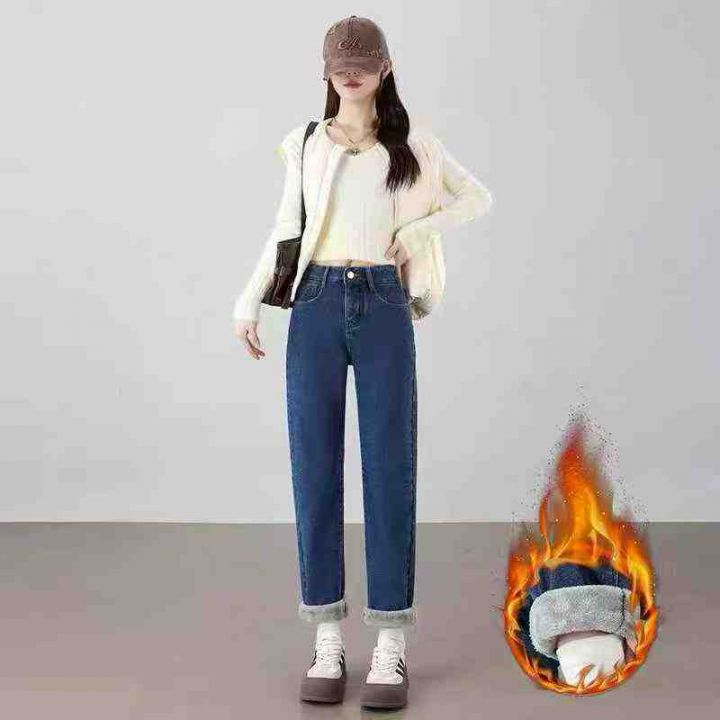 全清9.9。 商超下架妈妈牛仔裤女秋冬加绒2025新款松紧腰九分裤弹...