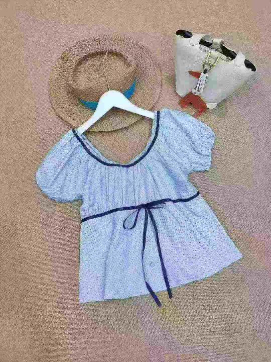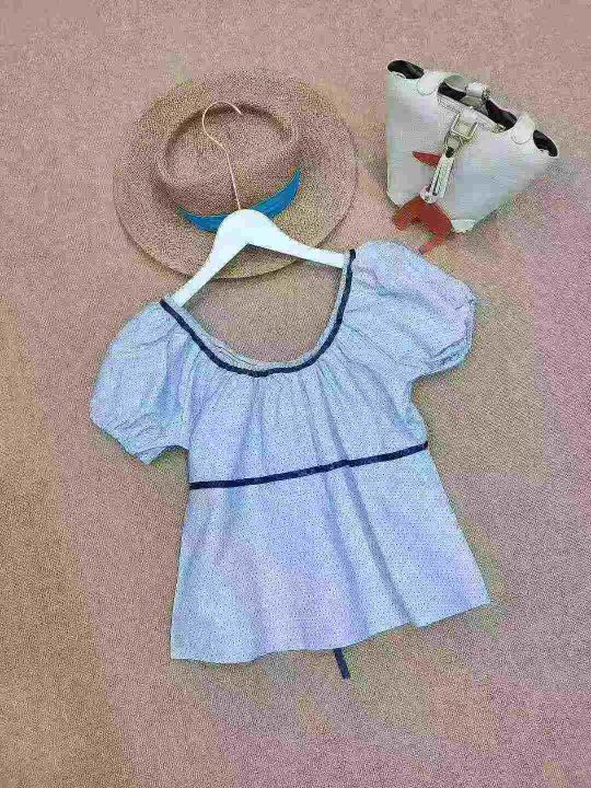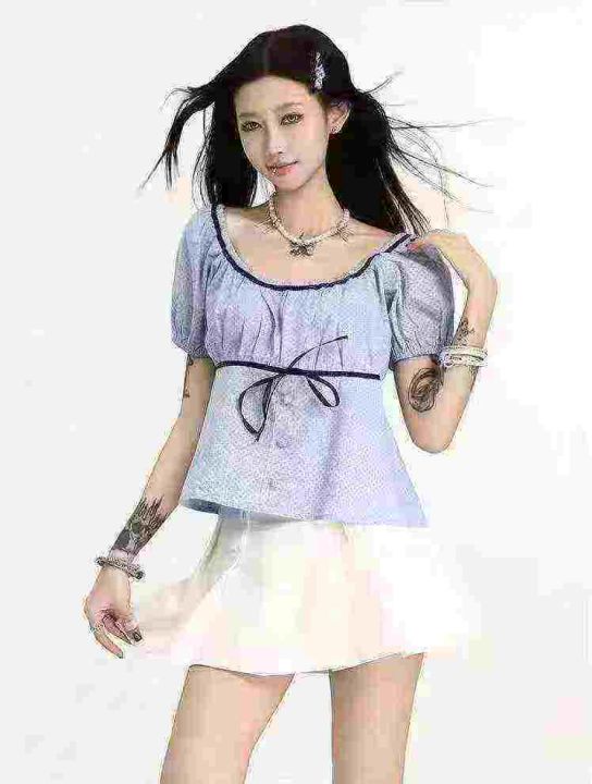 [月亮]:甜美温柔风波点撞色辣妹衬衫上衣