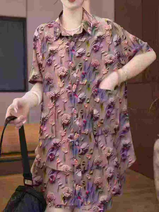 [月亮]:时尚宽松纽扣衬衣短裤两件套套装
