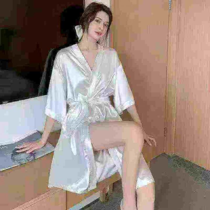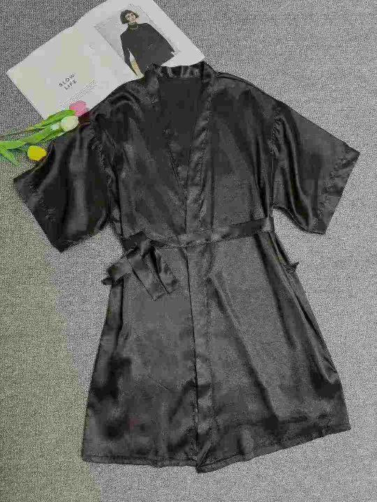 81件夏季男女冰丝薄款性感睡衣系带和服宽松浴袍,独立包装,均码