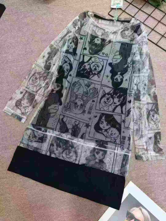 二次元风格薄纱中大童连衣裙,纯棉内胆吊带,1800件,货品干净无瑕疵,独立包装带吊牌,码数:7--12码,6.8清。