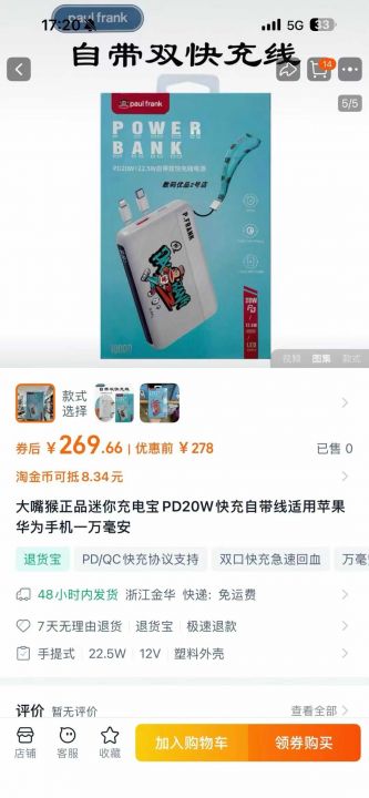 大嘴猴原装充电宝,带3C,原箱原件,一万毫安,带双线...