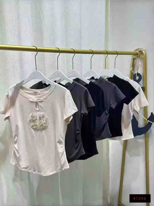 新中式国风刺绣盘扣纯棉短袖T恤女装夏季气质设计感修身显瘦短款上衣,(刺...