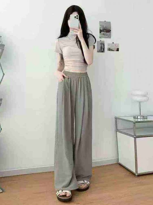 坠感长裤女慵懒褶皱山本裤窄版显瘦休闲裤阔腿裤,2个...