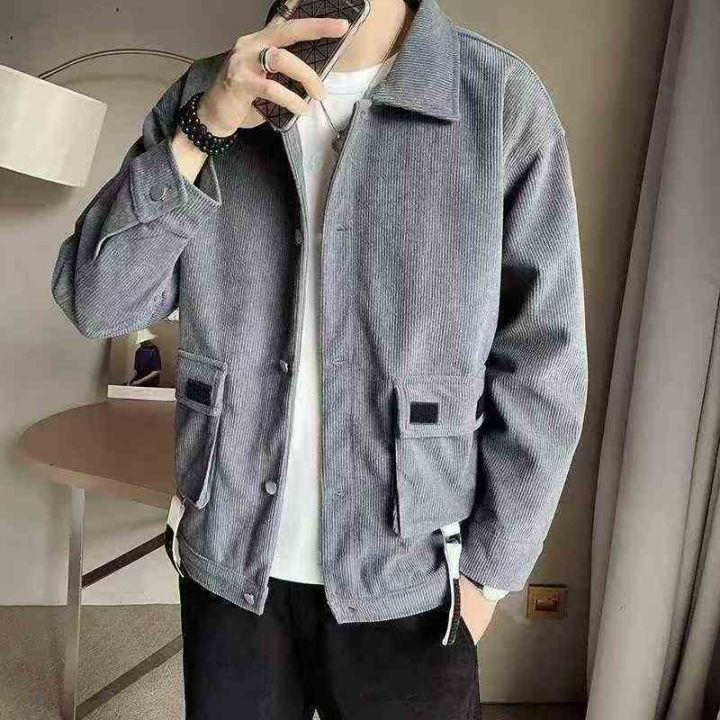加绒加厚灯芯绒外套男秋冬潮流休闲工装夹克痞帅外套,...