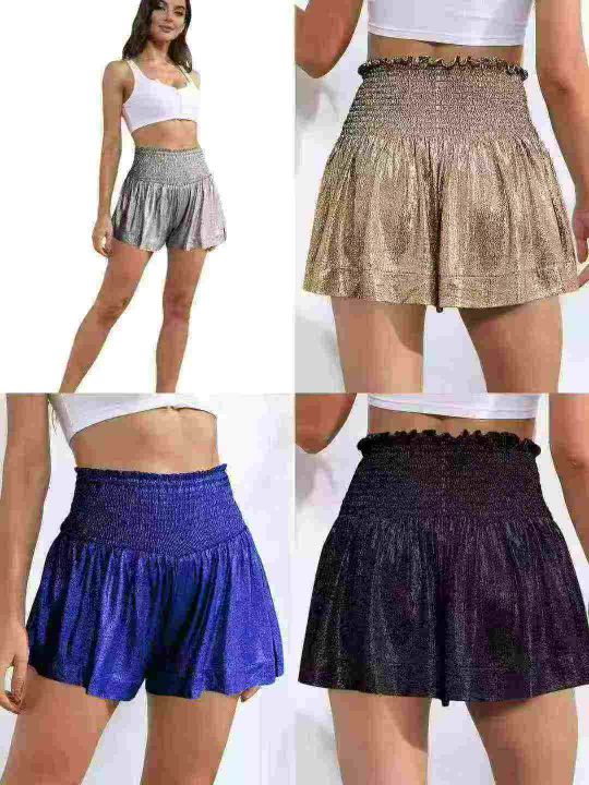3.8清320件辣妹短裤裙新款休闲运动女装短裤宽松松紧腰垂感闪光裤子现货 码...