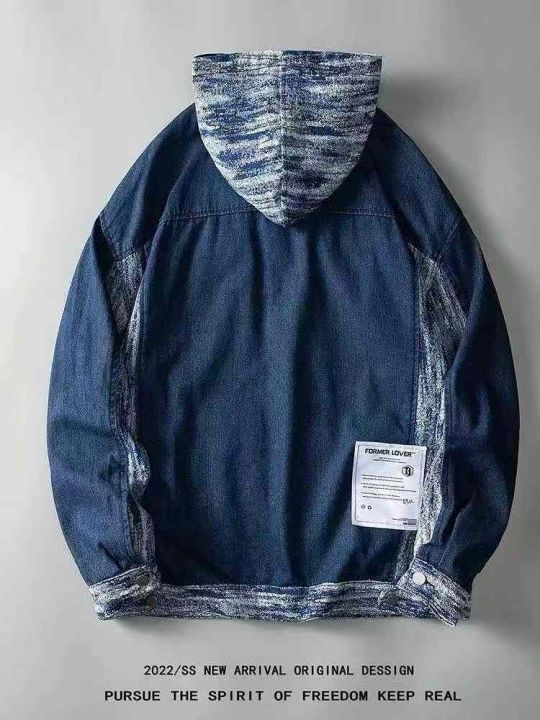 美式复古连帽牛仔外套男潮牌ins宽松百搭夹克韩版潮流假两件外套200件,独立...