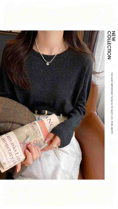 秋冬新款净版简约百搭多巴胺圆领包芯纱套头毛衣,独立...