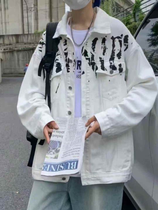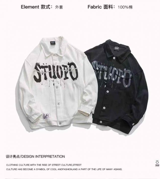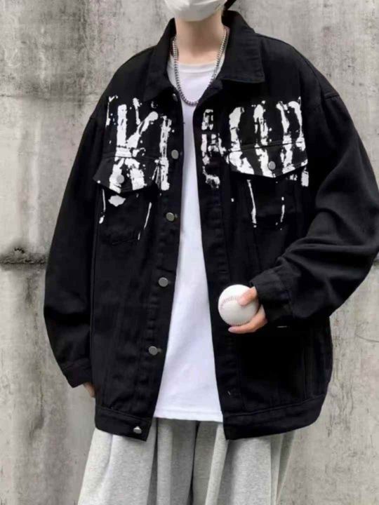 小众设计春秋季黑色牛仔外套男款复古宽松夹克400件,...