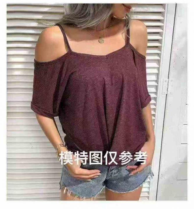 欧美时尚大版型女装纯色露肩短袖T恤,整款多色,数量 ...