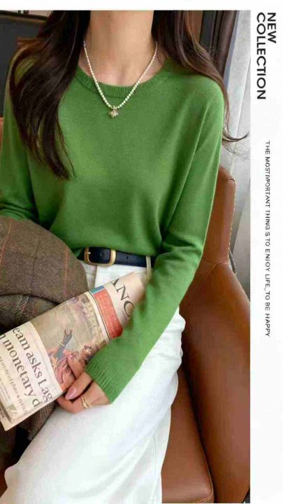 秋冬新款净版简约百搭多巴胺圆领包芯纱套头毛衣,独立...