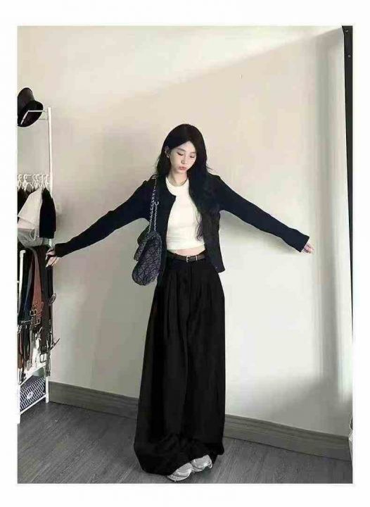 秋冬新款黑色宽松百搭排扣设计款洗水棉牛仔直筒烟管裤,独立包装带吊牌,码...