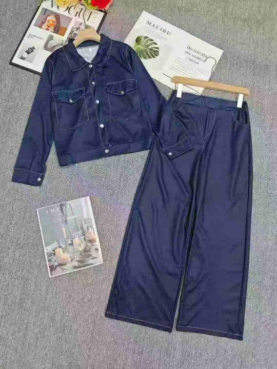 电商仓回收348件韩系高级小众明线设计感仿真丝牛仔色套装,码数M-XL-3XL。版型质量好,面料柔软丝滑。款式版型都很不错,独立包装,分货➕1