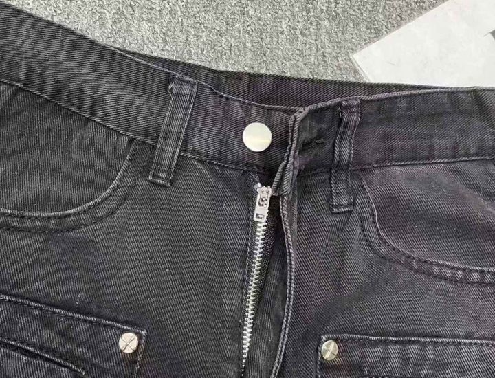 秋冬新款黑色宽松百搭排扣设计款洗水棉牛仔直筒烟管裤,独立包装带吊牌,码...