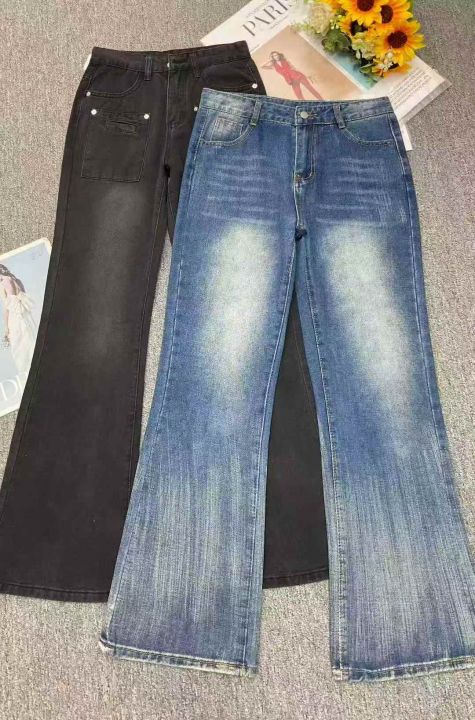 春秋新款洗水棉网红复古牛仔长裤,独立包装带吊牌,码...