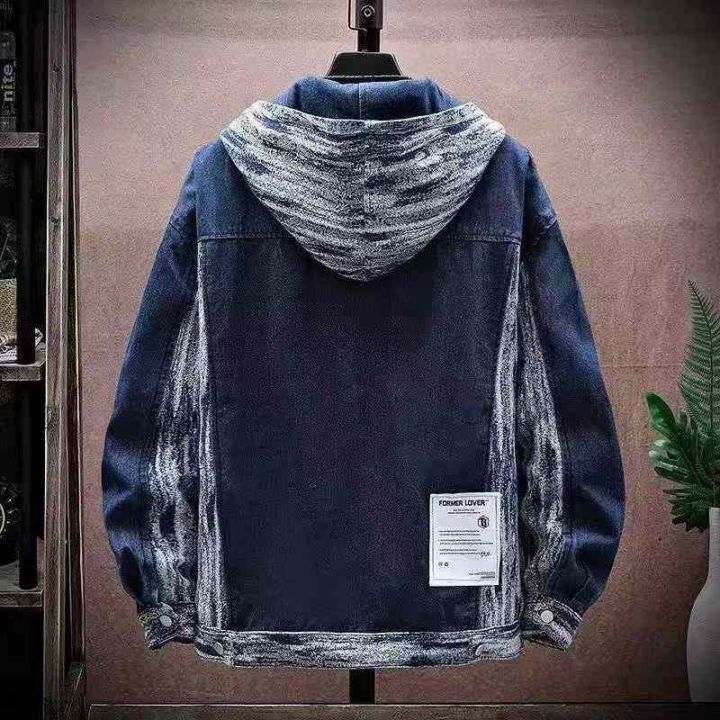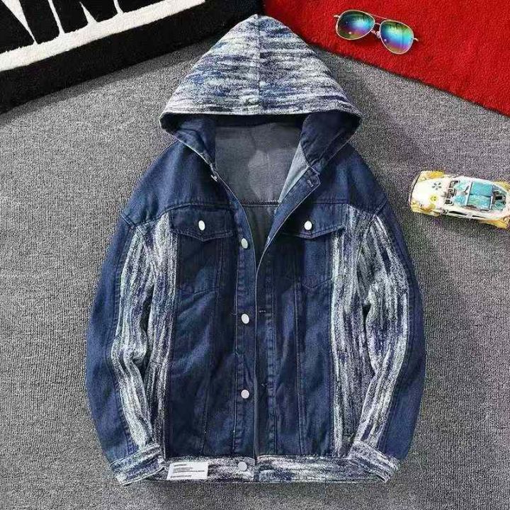 美式复古连帽牛仔外套男潮牌ins宽松百搭夹克韩版潮流假两件外套200件,独立包装,货品干净整洁,全清福利价22.8元,分货➕1