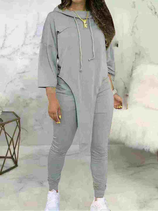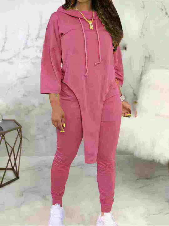 2101款 亚马逊欧美时尚女装秋季新款纯色连帽衫套装,数量117套左右,码数S-2XL,品质好,有独立包装。
