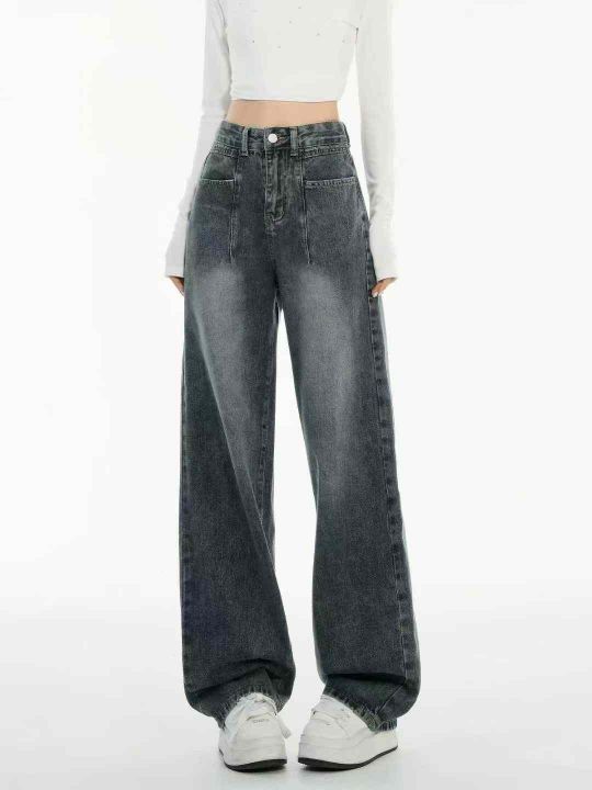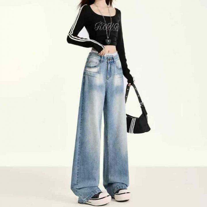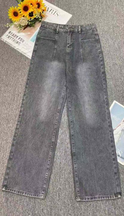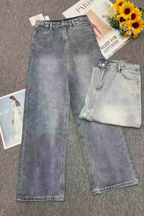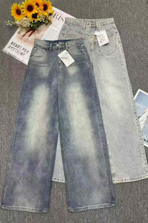 春秋新款洗水棉网红爆款大阔腿牛仔长裤,独立包装带吊...