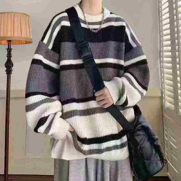 日系复古毛衣男款秋冬撞色打底衫线衣加厚潮牌宽松针织...