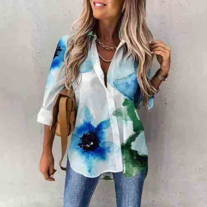 工厂回收357件外贸女士宽松大版印花长袖衬衫,码数S-2XL。版型质量好,颜色丰富鲜艳,货品新,有独立包装。分货➕1