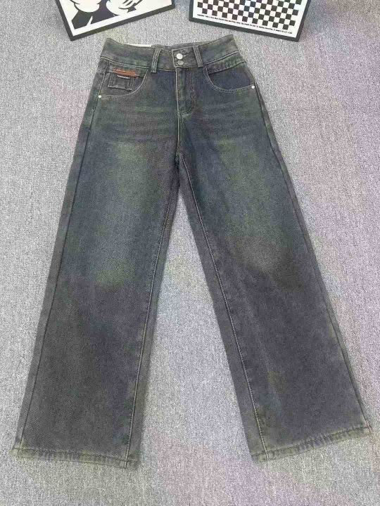 高品质高腰牛仔阔腿裤女直筒裤垂感百搭拖地裤,加绒款...