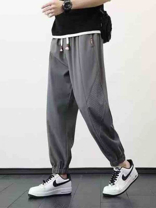 冰丝休闲裤男士夏季薄款2025新款男裤束脚裤子速干运动裤,整款3色,侧边有透气设计,M-4XL码,750件左右,独立包装,货品干净,7.8清,分货加加1